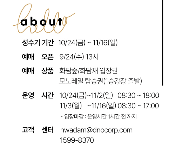 • 10월 말 ~ 11월 중순을 절정기로 예상하며, 예매 경쟁이 치열합니다