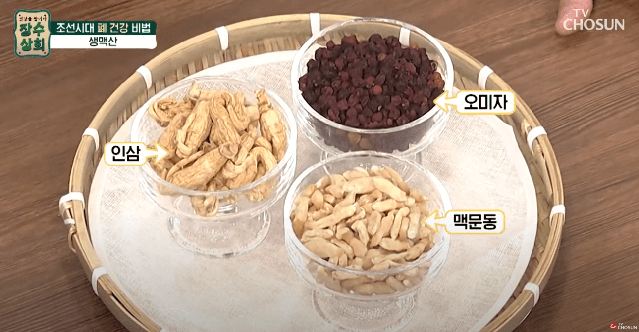 생맥산의 맥문동과 오미자는 건조한 폐를 촉촉하게 해주고 염증을 완화해주는 역할을 합니다.