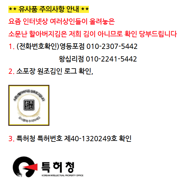 ⏰ 스마트스토어 알람 설정은 필수! - 오프라인 구매 - 소문난 할아버지김 영등포점 / 소문난 할아버지김 왕십리점에서 가능 (1인당 4봉 구매 가능)