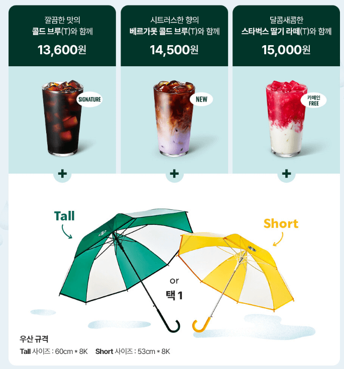 - 세트 구성: 투명 우산 1개 + 지정 음료 1잔