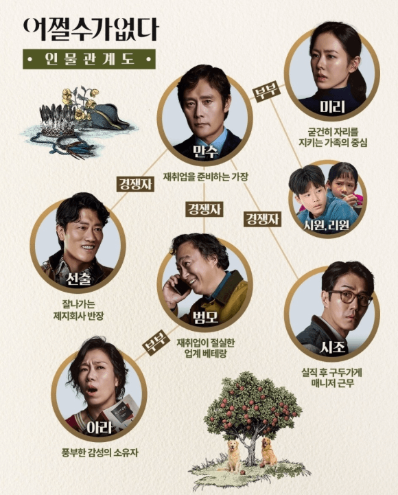 어쩔수가없다 줄거리·출연진·인물관계도 공개|평점 & 쿠키영상까지 정리