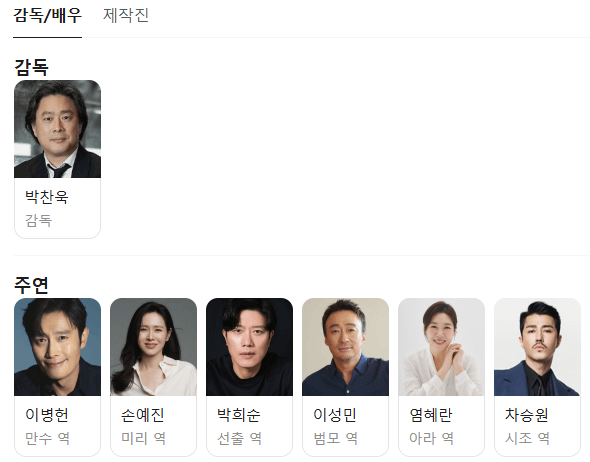 - 감독 / 각본: 박찬욱 연출 / 공동 각본(박찬욱, 돈 맥켈러, 이경미, 이자혜)