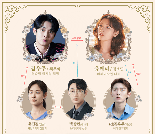 - 유메리 ↔ 박도윤 (전 약혼자) : 과거의 사랑, 갈등 요소