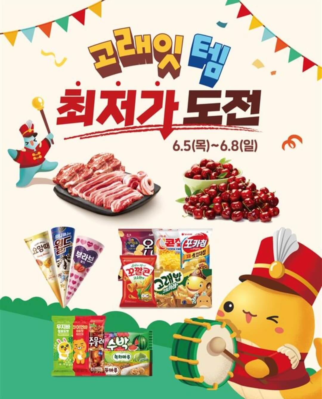 6월 5일(목)부터 6월 8일(일)까지 4일간 진행되는 이번 행사는 다양한 상품을 파격적인 가격에 만나볼 수 있는 절호의 기회입니다. 신선식품부터 가공식품, 생활용품까지 다양한 품목이 할인 대상이며, 일부 품목은 최대 50%까지 할인됩니다.