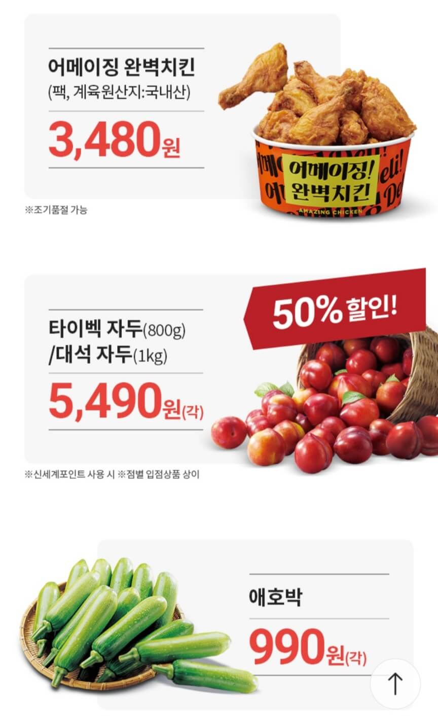 - 신세계포인트 적립 필수 → 신선식품 및 보양식 추가 할인