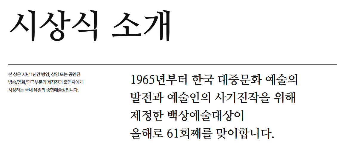 제61회 백상예술대상 공식 홈페이지 바로가기