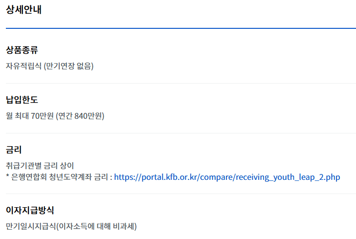 - 중복 가입 제한: 청년희망적금 등 유사한 정부 지원 상품과 중복 가입 불가