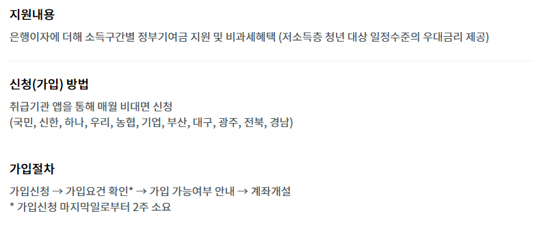 - 연령: 가입일 기준 만 19세 이상 34세 이하 (병역이행 기간 최대 6년 제외 가능)