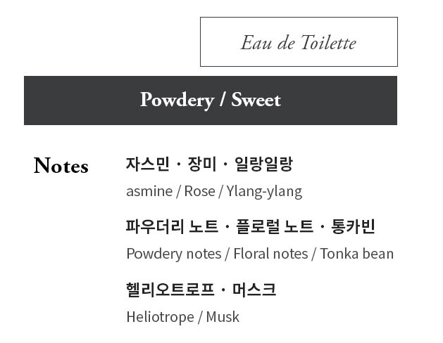 - 베이스 노트: 머스크, 헬리오트로프 – 파우더리한 마무리