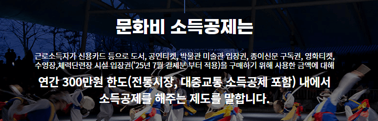 문화비 소득공제는 책, 공연, 박물관, 영화 등 문화 활동에 지출한 금액에 대해 적용됩니다.
