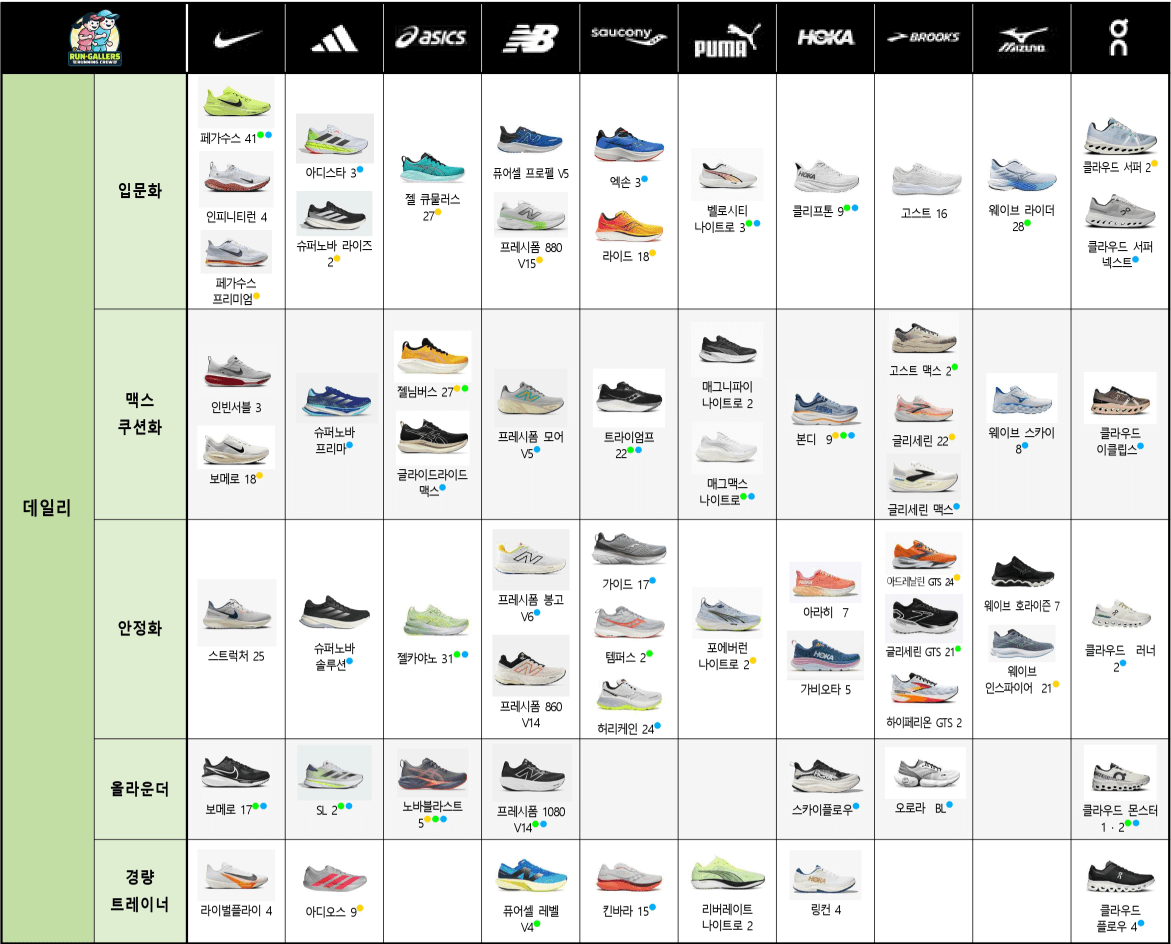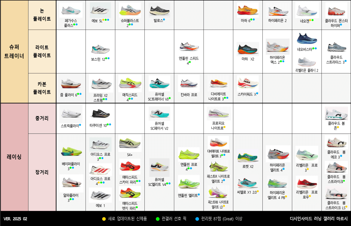 📊 러닝화 계급도 요약표 (2025년 최신 기준)