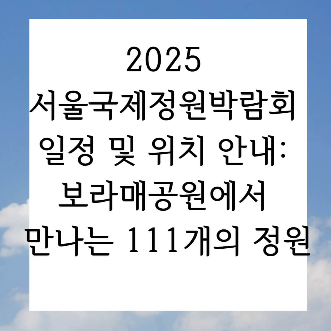 2025 서울국제정원박람회 일정 및 위치 안내: 보라매공원에서 만나는 111개의 정원