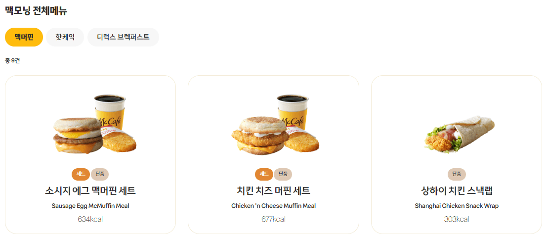 | 에그 맥머핀 | 클래식한 아침 메뉴, 담백하고 부담 없음 |