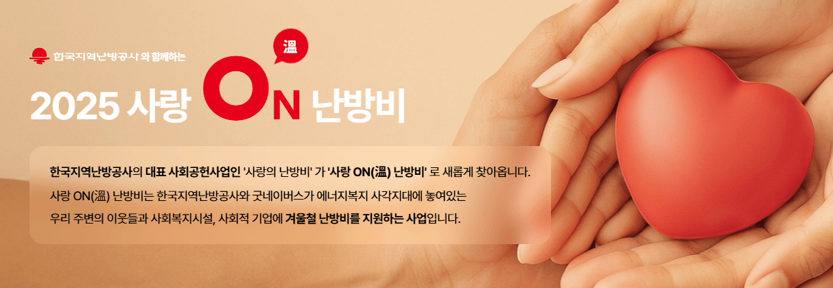 - 사업명: 사랑 ON(溫) 난방비 (한국지역난방공사 + 굿네이버스 공동 진행)