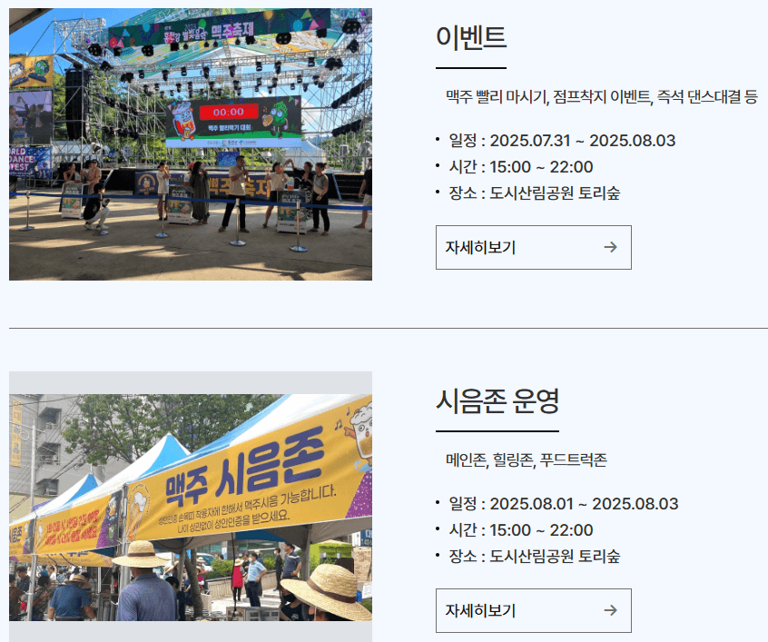 - 축제 테마: 맥주, 음악, 캠핑 분위기를 동시에 즐길 수 있는 야외형 복합 페스티벌