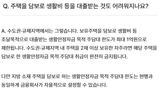 • 대출 기관이 ‘주택구입 목적’ 여부 확인 강화 → 용도 심사 강화