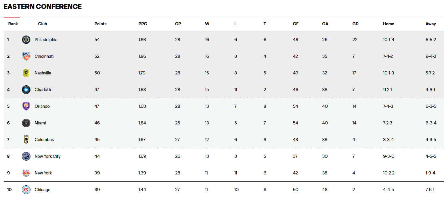 - ESPN, MLS 공식 홈페이지에서 최신 순위 실시간 확인 가능.